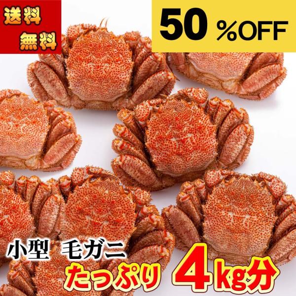 送料無料 毛蟹 11尾から14尾入りで、合計4kg前後 ボイル冷凍 1尾の280g〜360gの小型サイズ 毛ガニ 食べ放題 北海道産 毛がに カニ味噌 爆買