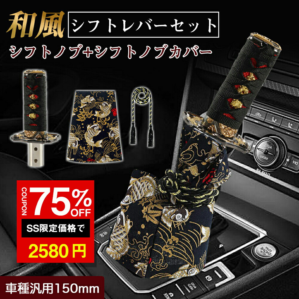 ★SS限定73%OFF→2830★汎用シフトノブ シフトノブカバー 和風 日本刀 150mm アルミ 口径変換 変換 アダプター 黒 柄長さ 15cm ブラック 武士 武士道 武将 刀 ねじ込み式 和の心 ブラック波柄