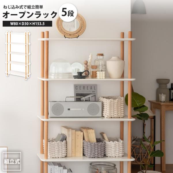 オープンラック 5段 幅80 高さ153 おしゃれ ホワイト 北欧 飾り棚 本棚 リビング収納 PT-978WH ラック5段