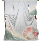 セール 着物 訪問着 正絹 グレー 菊 桜 仮絵羽 きもの 未仕立て 絹 ほうもんぎ 蔵出し 礼装 付け下げ 5p