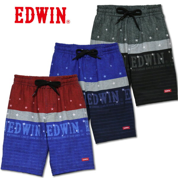 【70%OFF】 水着 キッズ 子供 男の子 ストレッチ サーフパンツ EDWIN エドウィン (712301)デニムボーダー×星柄 120cm スイミング 水泳 こども用 小学生 海パン