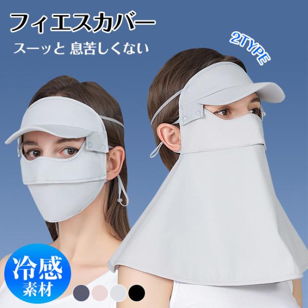 オシャレ つば付き 2TYPE 日焼け防止 UPF50+ 冷感マスク 首まで 紫外線対策グッズ 息苦しくない 小顔効果 呼吸穴 全面カバー シムレス