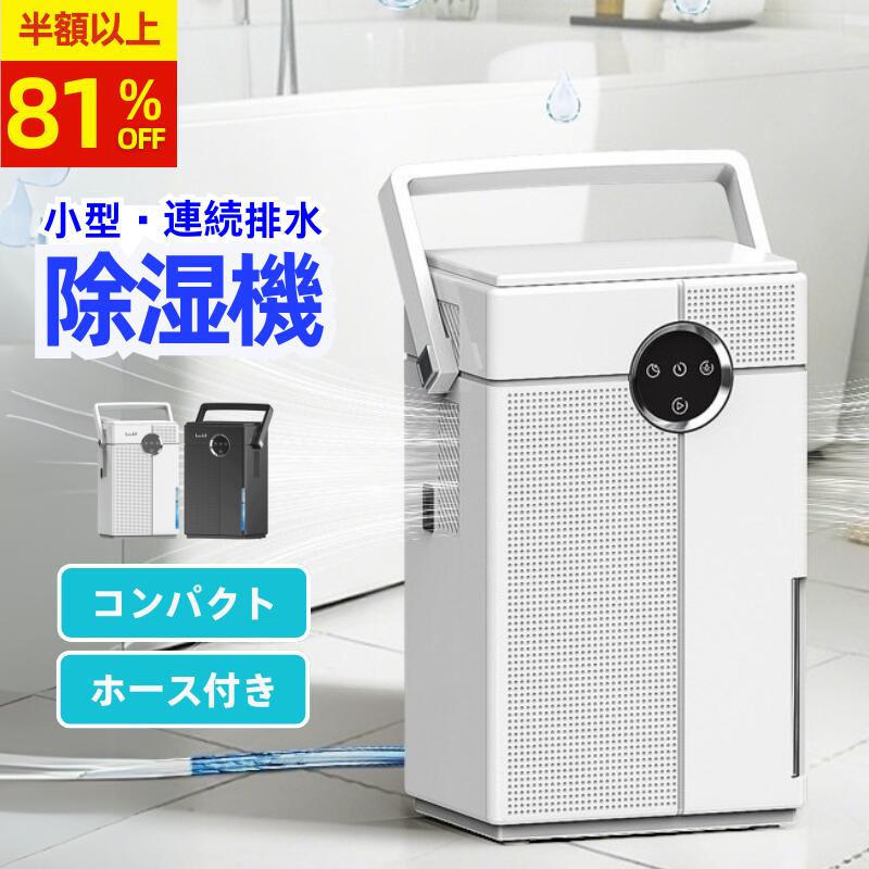 【P2倍&81%OFF・SS限定】除湿機 小型 静音 ホース付き 連続排水 コンパクト 除湿器 除湿乾燥機 ペルチェ式 梅雨 カビ対策 浴室乾燥 洗面台 リビング 寝室 靴箱 押し入れ キッチン クローゼット 棚 部屋干し ハンドルから付き 3.5Lタンク 省エネ 一人暮らし