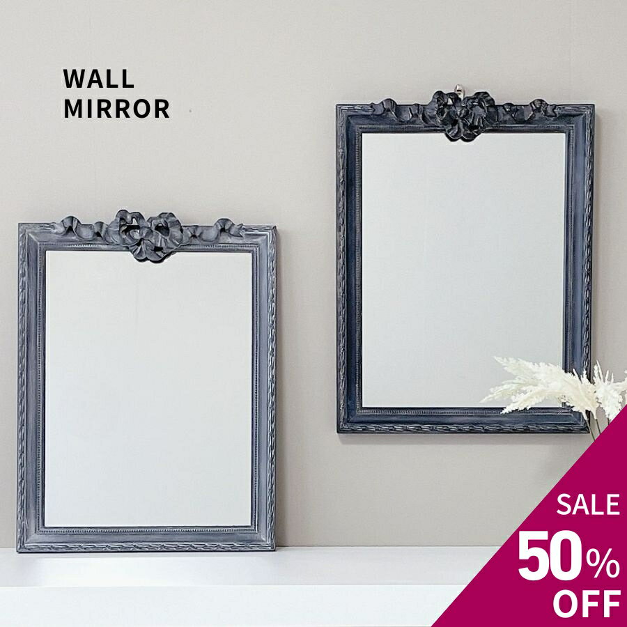 【50%OFF 楽天スーパーセール】 鏡 壁掛け アンティーク トイレ ドレッサー ミラー ウォールミラー 玄関 アンティーク風 アンティーク鏡 洗面台 壁掛けミラー 壁掛け鏡 35.5cm 48cm 長方形 縦長 リボン グレー おしゃれ 洗面 洗面鏡 メイクミラー 化粧鏡 北欧