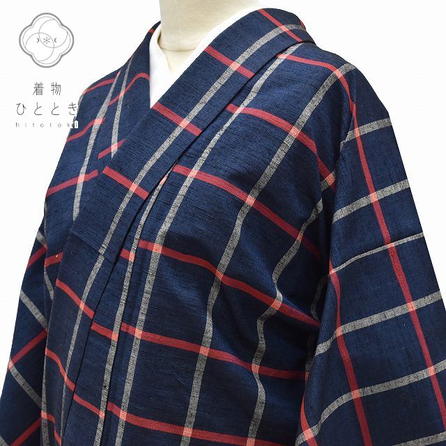 【スーパーSALE限定×50%OFF】【中古】 紬 リサイクル着物 身丈163cm 裄丈63.2cm 正絹 仕立て上がり つむぎ L 紺系 格子文様 良品 [ 着物 中古 帯 リサイクル 振袖 浴衣 袴 和服 古着 ] rr1385b