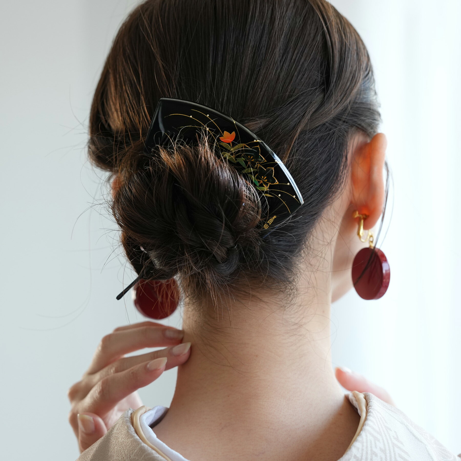 【50%OFF】【日本製 蒔絵塗り前櫛かんざし 桔梗】髪飾り くし 和コーム 髪飾り 和装 和服 ヘアアクセ 浴衣 着物 成人式 振袖 卒業式 袴 訪問着 入園式 入学式 卒業式 6個までメール便可能