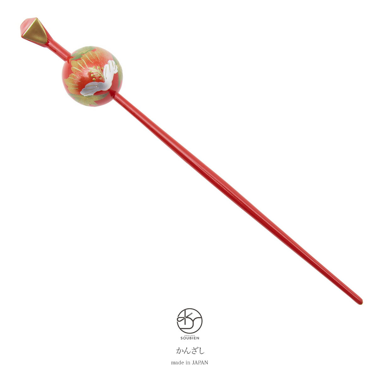 【50%OFF☆スーパーSALE限定】玉簪 振袖用 訪問着用 小紋用 浴衣用 赤 牡丹 手描き ラメ かんざし 髪飾り ヘアアクセサリー 和装