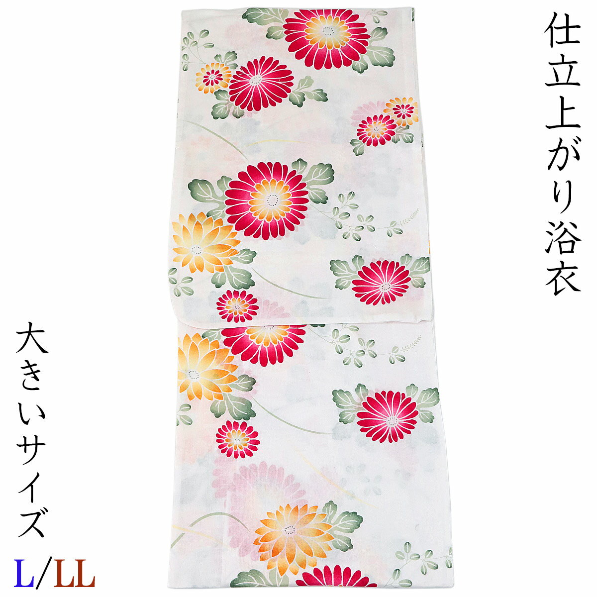 【50%OFF/スーパーSALE】 仕立て浴衣 女性用 -143- 綿100% L/LL-size 白/菊柄