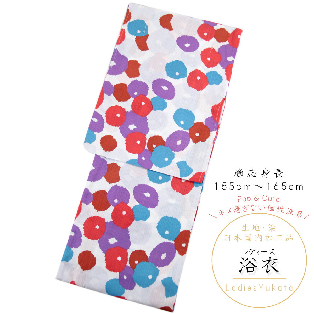 【50%OFF/スーパーSALE】 浴衣 レディース -65- 変わり織 綿100% フリーサイズ 白 赤 万寿菊 モダン柄