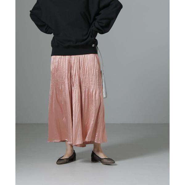 パンツ 消しプリーツサテンワイドパンツ レディース