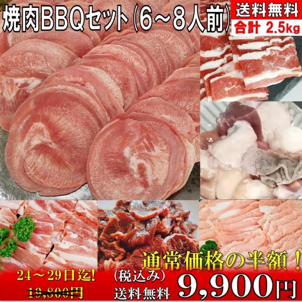 BBQセット 肉 バーベキュー 食材 セット 2.5kg 焼肉セット 牛肉 バーベキュー 肉 セット カルビ ハラミ 焼肉 タン メガ盛り 肉 大容量 6〜8人前