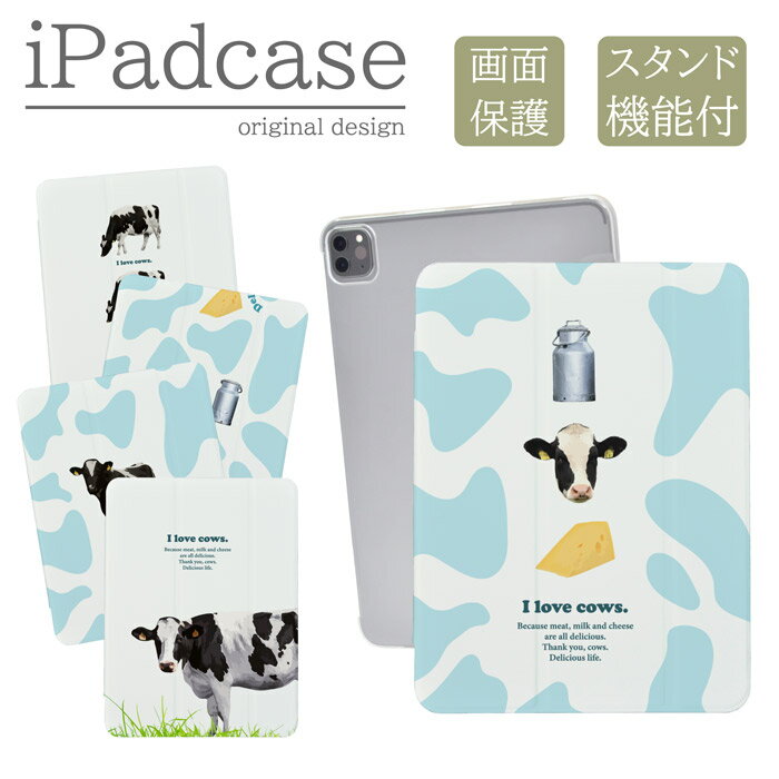 半額 50%OFF スーパーセール★ iPad 第9世代 第10世代 ケース 第8世代 カバー 第7世代 アイパッド mini air pro 10.2 10.5 牛柄 牛 写真 可愛い 水色 パステルブルー 牛乳 キッズ 子供 iPad第6世代 カバー アイパッドカバー 手帳型 送料無料 メール便