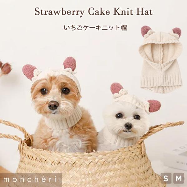いちごケーキ風ニット帽の登場です♪頭にはクリームの上にいちごが乗っており、可愛く寒さ対策できます◎寒がりの愛犬ちゃんのお出かけ先で注目の的になること間違いなしなニット...