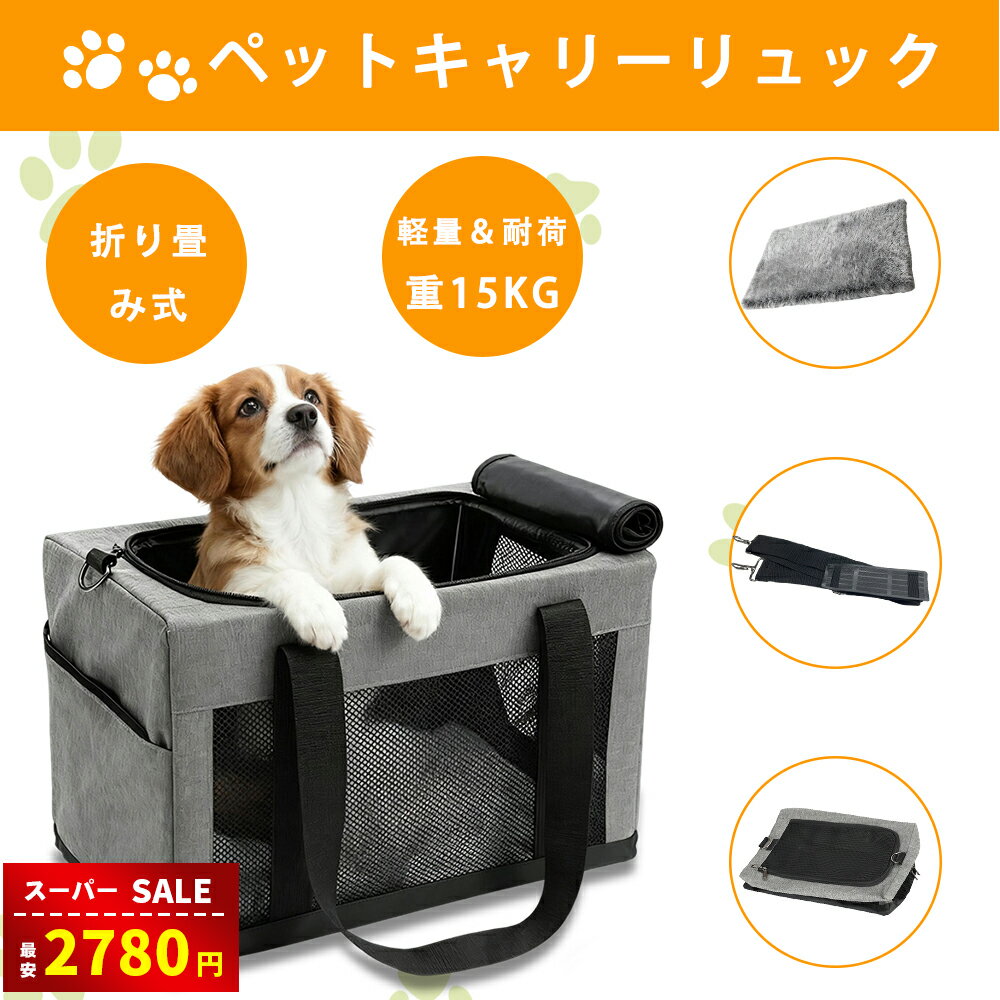 【スーパーSALE限定60%OFF⇒2780円】ペットキャリー 猫キャリー バッグ 手提げ 猫 キャリー ショルダー 猫 きゃりーバッグ 猫 ウサギ 小型犬 小動物用 リュック 通気性 折りたたみ お出かけ ドライブ 旅行 通院 防災 避難用 ライトグレー