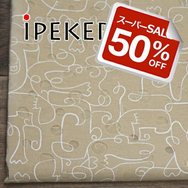 【50%OFF】トルコ iPEKER ビスコースナイロンリネン オパール加工 横畝スラブ×オーガンジー 一筆書きフェイス風プリント×シアードット サンドベージュ地×顔料ホワイト V[オーダーカット生地 10cm単位] 【RCP】