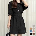 ワンピース レディース 春秋 半袖 五分袖 ミニ 膝上丈 黒 ピーターパンカラー バルーンスリーブ ボリューム袖