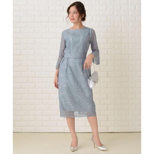 ドレス 花柄総レースミモレ丈シンプルパーティドレス・ワンピース