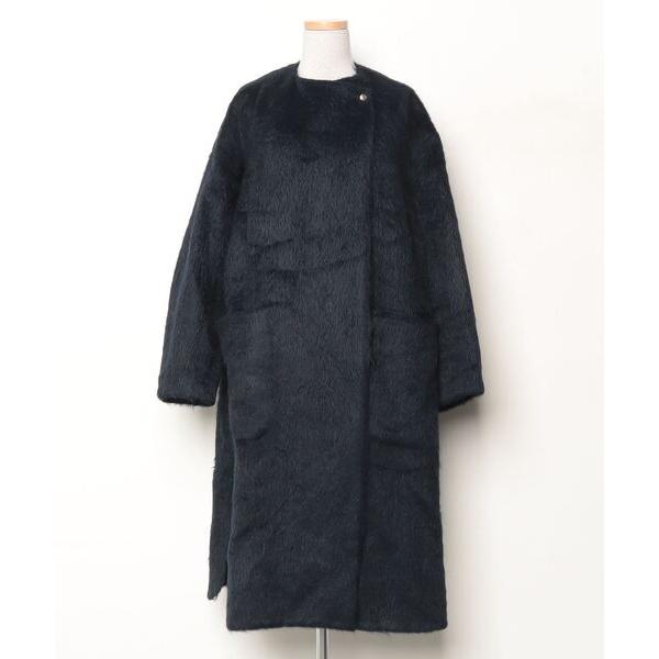 「Drawer」 ノーカラーコート 36 ネイビー レディース