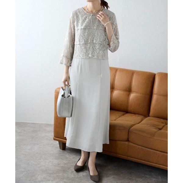 「&HALF」 「k&s」7分袖ワンピース 9 ライトグレー レディース
