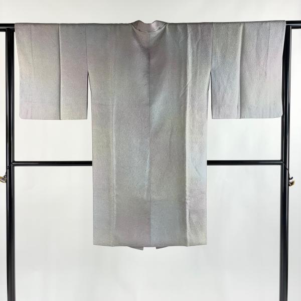 道中着 身丈104cm 裄丈64cm M 和装コート 着物衿 地紋 ぼかし 青灰色 正絹 名品 中古