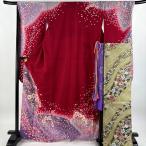 振袖 身丈167cm 裄丈68.5cm L 袷 袋帯フルセット 桜 蝶 金彩 赤 正絹 美品 名品 中古