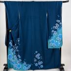 振袖 身丈170cm 裄丈70cm L 袷 桜 草花 金銀彩 ぼかし 青 正絹 名品 中古