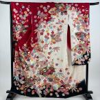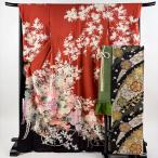 振袖 身丈166cm 裄丈66cm M 袷 扇面 松竹梅 金糸 金彩 赤 正絹 名品 中古