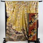 振袖 身丈169.5cm 裄丈69cm L 袷 袋帯フルセット 花車 蝶 金彩 染め分け 薄黄土色 正絹 秀品 中古