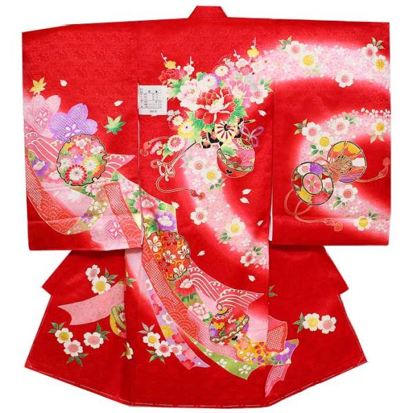 セール お宮参り 産着 女児 祝い着 花車 鼓 鈴 四季の花 赤 着物 お宮詣り のしめ 祝着 子供 女の子 七五三