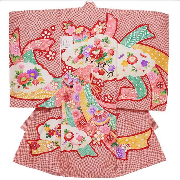 お宮参り 産着 女児 祝い着 鹿の子 絞り柄 手毬 花々 赤 着物 お宮詣り のしめ 祝着 子供 女の子 七五三【素 材】表地:絹100% 胴裏:ポリエステル100% 下着:ポリエステル100%【サ...