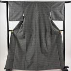 美品 紬 身丈161.5cm 裄丈64cm M 袷 アンサンブル 紬地 花 幾何学模様 灰色 正絹 優品 中古