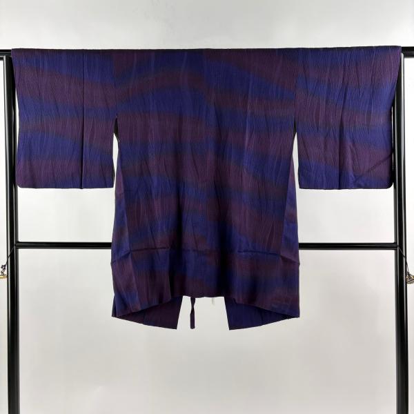 美品 道中着 身丈97.5cm 裄丈64cm M 和装コート 地紋 ぼかし 濃紫 正絹 秀品 中古