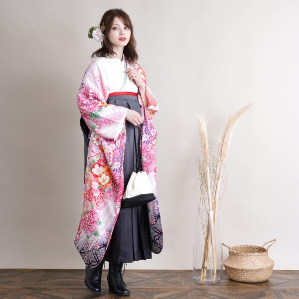 袴 レンタル 卒業式 レンタル 振袖 袴 18点セット 古典柄 レトロ アンティーク系 袴セット 卒業式 花柄 ピンク系