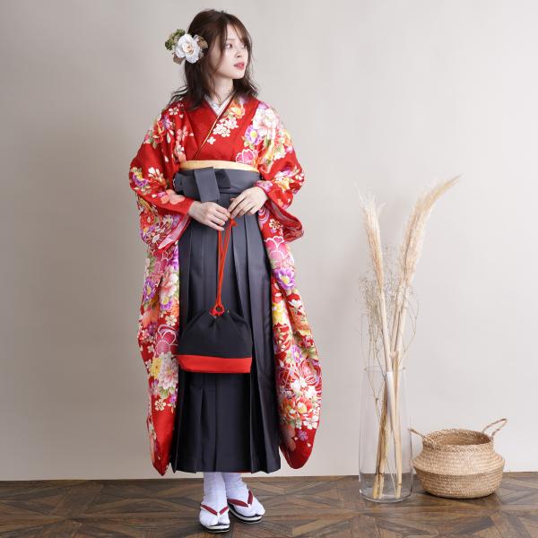 袴 レンタル 卒業式 レンタル 振袖 袴 18点セット 古典柄 レトロ アンティーク系 袴セット 卒業式 花柄 赤系