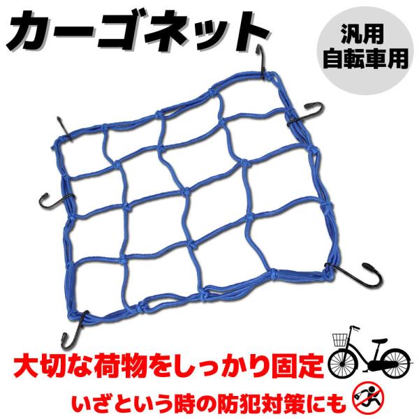 汎用 自転車用 自転車ネット ガードネット キャリアネット セキュリティネット ゴム 青 ブルー ママチャリ クロス ロード サイクル ヘルメット メッシュ