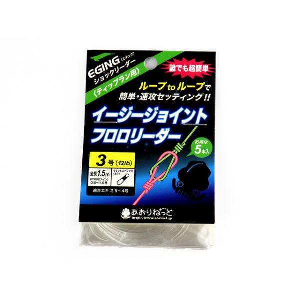 あおりねっと イージージョイントフロロリーダー3.0号 ティップラン用 リーダーライン 1.5m フロロカーボン フロロ スナップ エギング