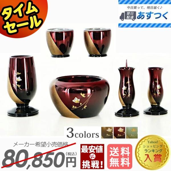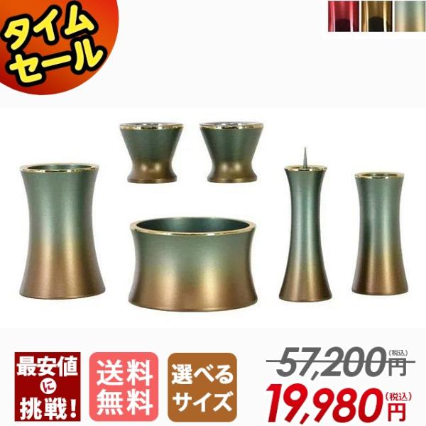 仏具セット「半額越え」 仏具 セット モダン ミニ おしゃれ 仏具 切子仏具 暦 赤銅 6点セット 3.0寸 レッド