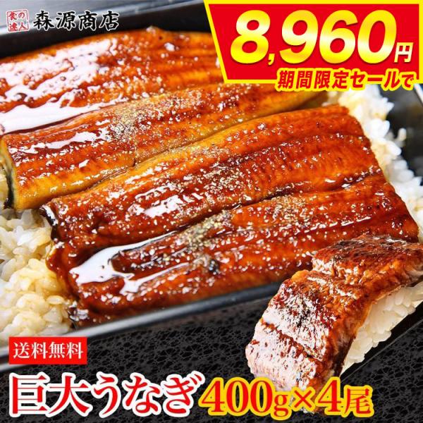 うなぎ 巨大 うなぎ蒲焼き 4本 約1.6kg(約400g×4尾) 中国産 ウナギ 鰻 食品 海鮮 爆買