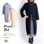 ニットワンピース ロング セーター 秋冬 長袖 大きいサイズ トップス チュニック ゆったり ハイネック スリット リブニット レディース 無地 個性的 エスニック