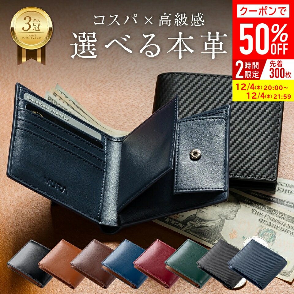 \クーポンで50%OFF♪/【SALE】MURA 公式【ツヤ感抜群コードバン調牛革】財布 メンズ 二つ折り 本革 薄型 大容量 ポケット レザー カーボンレザー レディース 革 牛革 コンパクト 二つ折り財布 折りたたみ カード 黒 軽量 コードバン 送料無料 大容量 2つ折り box型