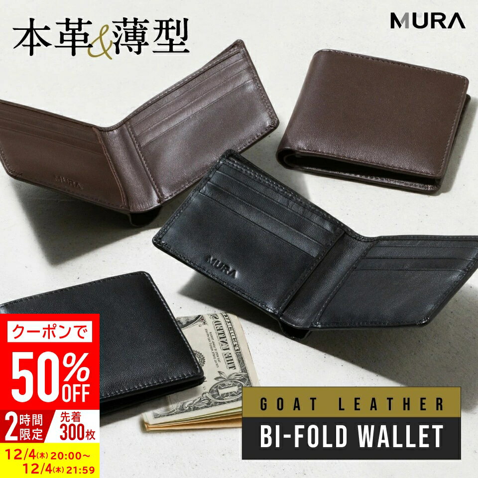 \クーポンで50%OFF♪/楽天1位&3冠【SALE】MURA 公式 両面本革 ゴートレザー 二つ折り財布 メンズ オール 本革 やぎ革 レザー 男性 ブランド メンズ ボックス型 小銭入れ 二つ折り 財布 さいふ 黒 茶 ブラック ブラウン カードケース プレゼント 薄い 敬老の日 シンプル