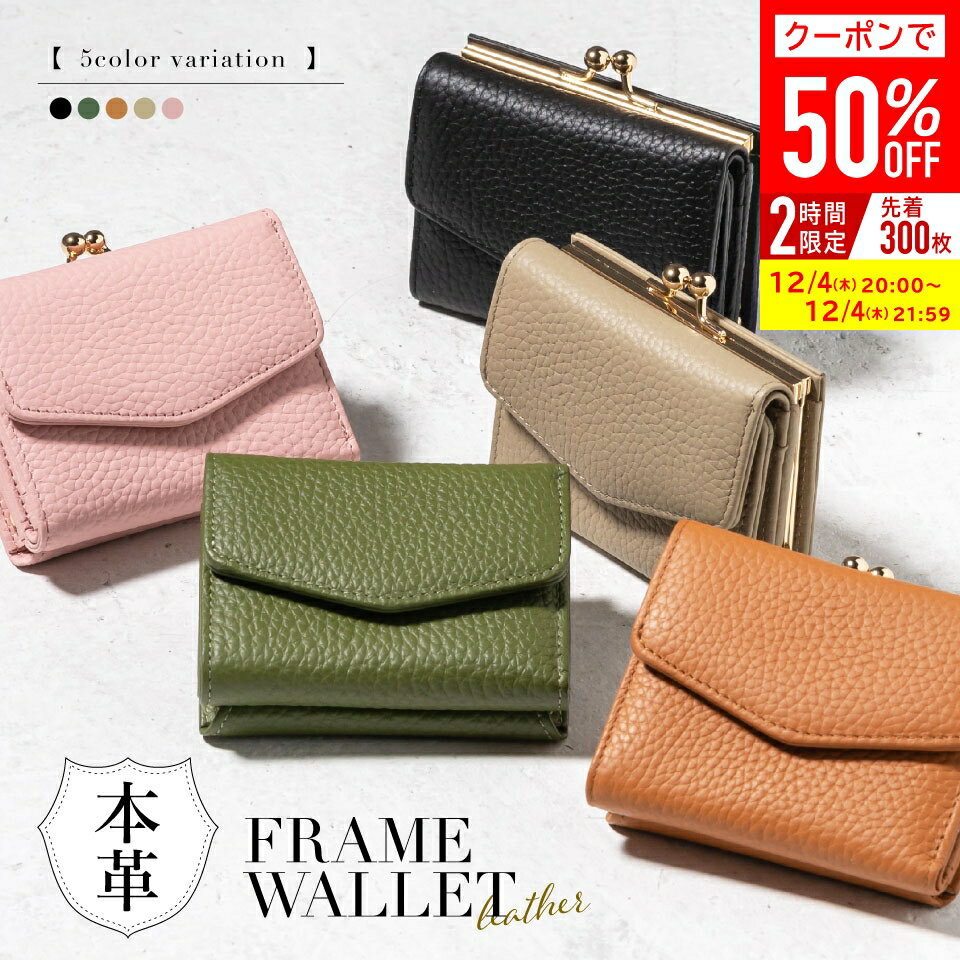 \クーポンで50%OFF♪/【ミニバッグに合わせやすい!使いやすい!と大好評】本革 シュリンクレザー がま口 三つ折り財布 レディース 牛革 小さい財布 ミニ財布 小さめ カード収納 ボックス型小銭入れ おしゃれ 上品 かわいい ブランド ギフト プレゼント