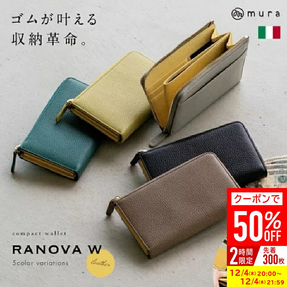 \クーポンで50%OFF♪/【イタリア革×ゴム×小さい長財布×カード18枚以上収納】RANOVA W イタリアンレザー 小さめ 長財布 コンパクト 大容量 小さい 財布 スキミング 防止 お札 カード レディース ミニ ギフト 誕生日 プレゼント ラノーバ 薄い L字ファスナー スリム