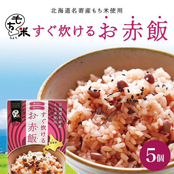 【アウトレット】<賞味期限2026年1月7日>北海道名寄産もち米使用|すぐに炊けるお赤飯 5箱