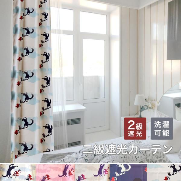 カーテン おしゃれ 遮光 2級 2枚組 赤ずきん 童話 幅100cm 丈110 135 178 200cm 送料無料 安価 お得 安い 可愛い かわいい おしゃれ 既製 洗濯可能 オシャレ