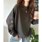 トレーナー スウェット ハンドメイド風刺繍に釘付け。前後2wayランダム袖刺繍裏起毛オーバーサイズスウェット レディース