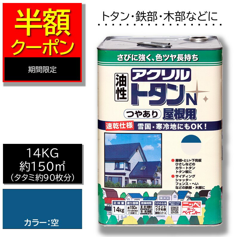 アウトレット特価品50%OFF〜【公式ストア】【半額クーポン配布中】屋根ペンキニッペアクリルトタンN屋根用14KG空ニッペホームオンライン|トタン屋根耐候・耐久性抜群油性塗料屋根塗り車庫塗り物置屋根つやあり屋根用鉄部用安い