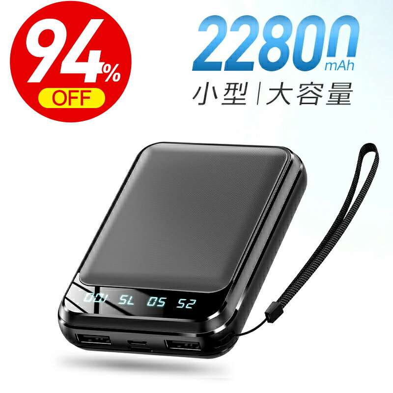 小型モバイルバッテリー 送料無料 コンパクト軽量 USB ストラップ付き 残量表示 2.1A急速充電 スマートフォン充電器 スマホバッテリー 旅行 出張 電熱ベスト 電気毛布 電気ひざ掛けメー...