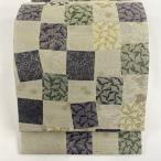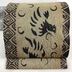 美品 名古屋帯 名品 鳥 菱 金通し 箔 灰茶 正絹 中古