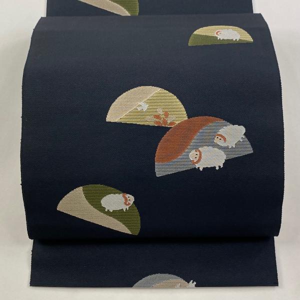 名古屋帯 美品 逸品 八寸名古屋帯 松葉仕立て 羊 鳥 黒 正絹 中古